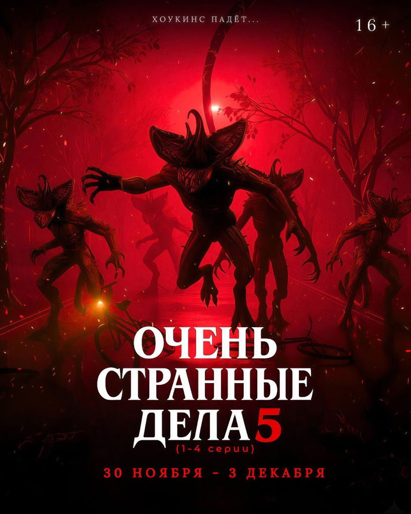 30 ноября-3 декабря мы продемонстрируем в Большом зале новый 5-й сезон сериала "Очень странные дела" (одним сеансом, сразу 4 серии).