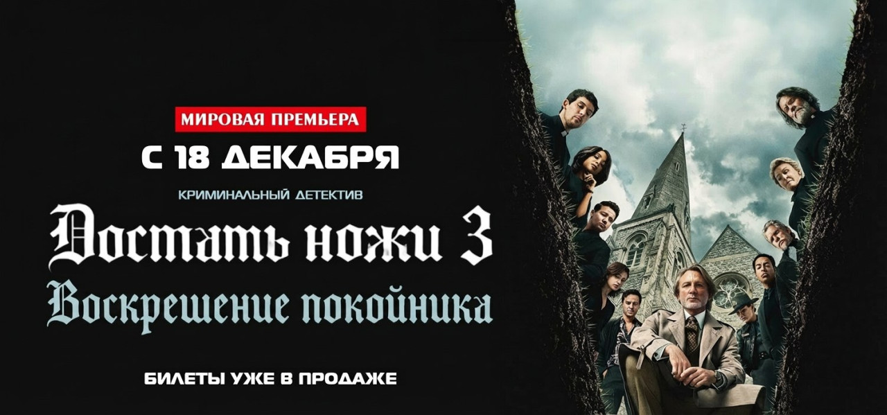 Мы открыли бронирование и продажу билетов на убийственный детектив “Достать ножи 3: Проснись, мертвец", у нас в прокате с 18 декабря.